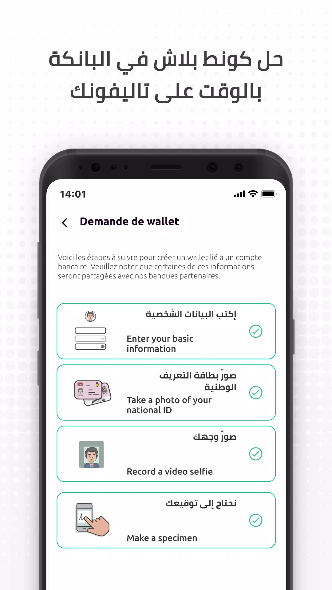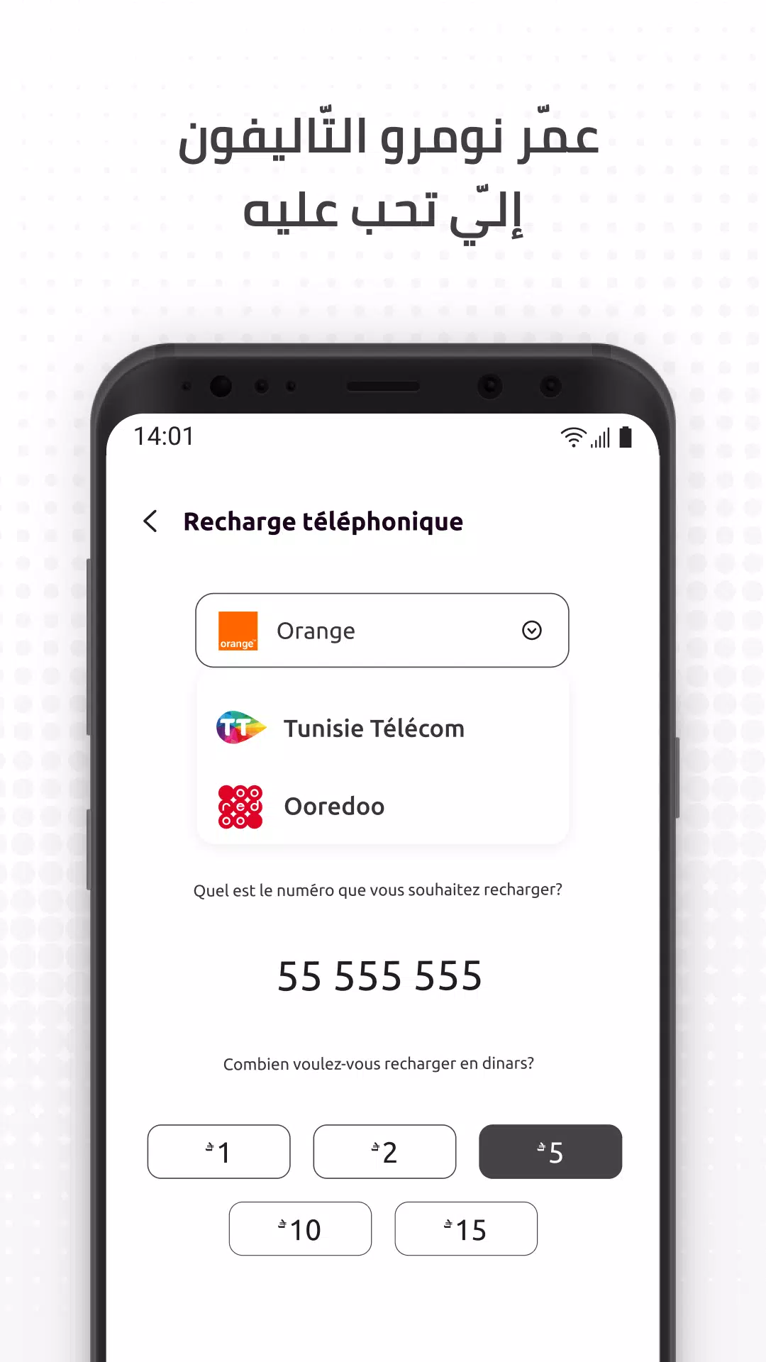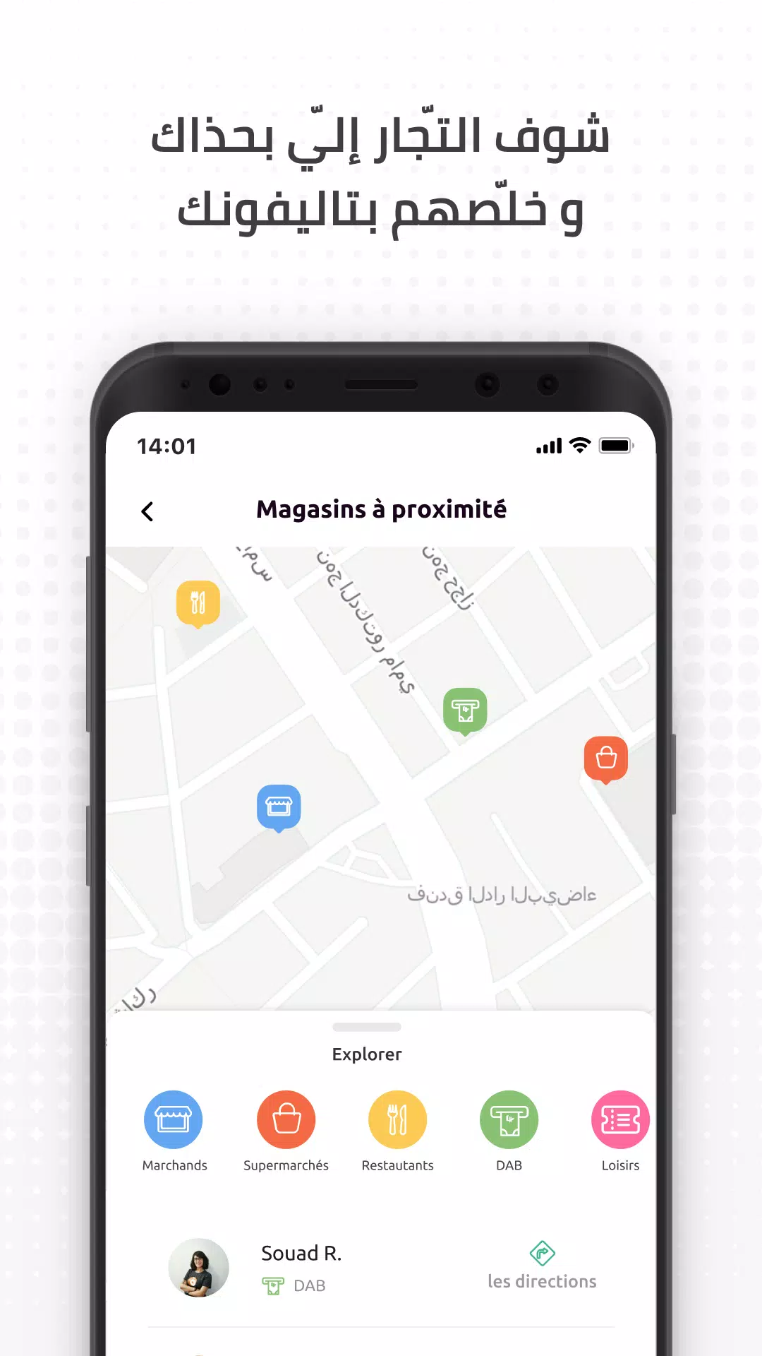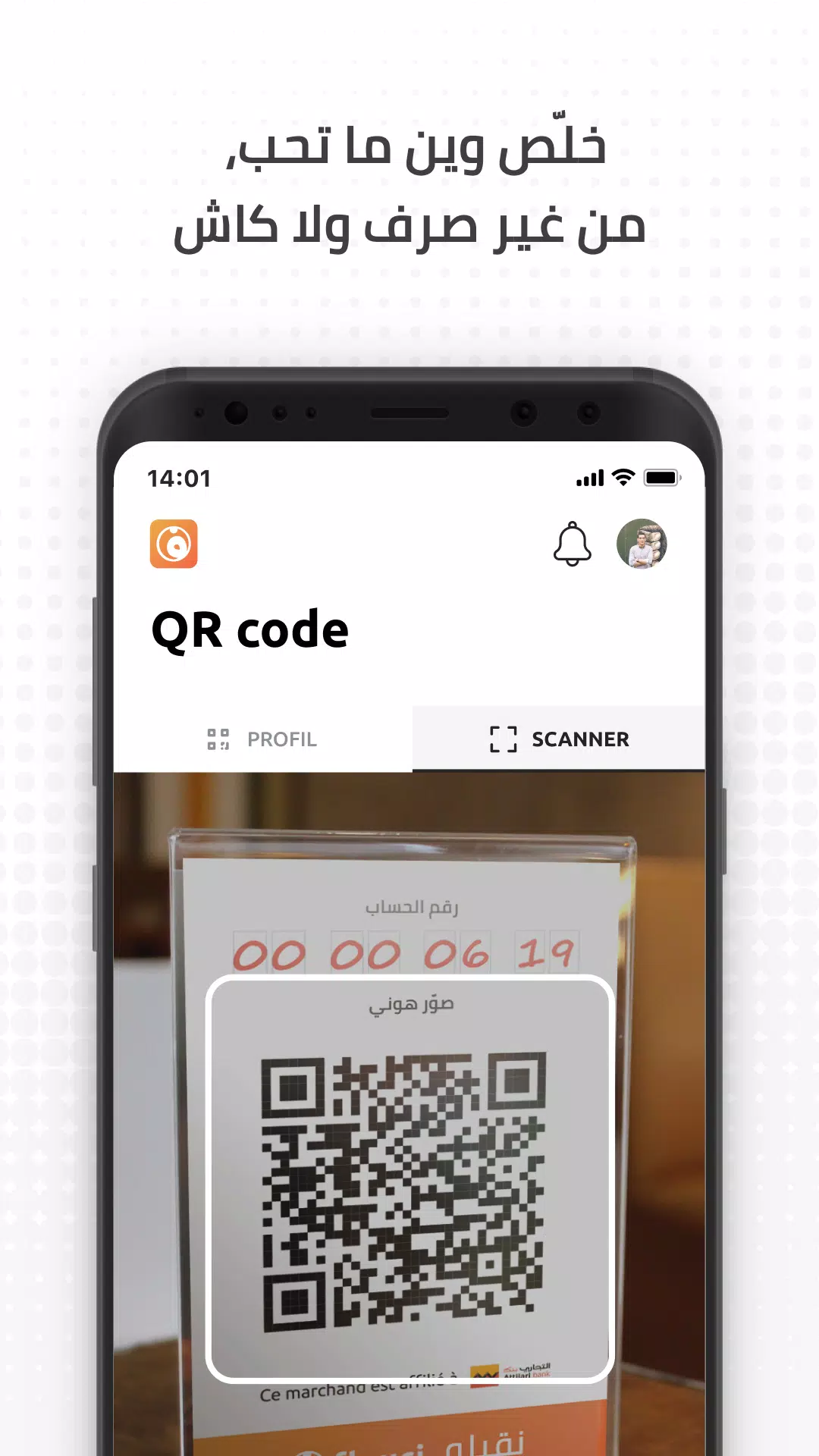 - Pay at partner merchants in Tunisia by scanning a QR code with the app.