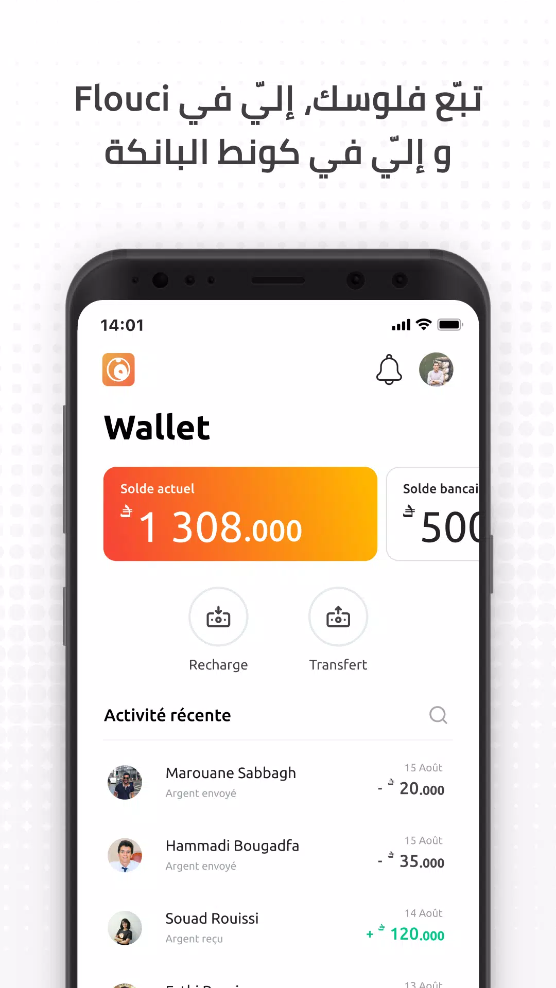 - Send and receive money securely and instantly to anyone with a Flouci wallet.