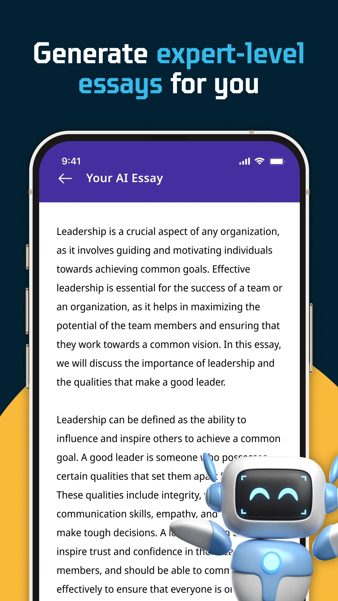 Unlock the potential of your writing with the AI Essay Writing Android app. With its cutting-edge AI technology, support for multiple languages, and user-friendly interface, this app is a must-have for anyone looking to enhance their writing skills. Whether you're a student looking to tackle academic challenges or a professional seeking to create compelling business proposals, the AI Essay Writing has you covered. Download now and experience a revolutionary approach to essay writing.