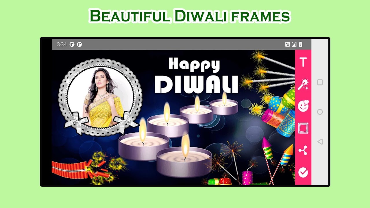 - Festive Designs: With a variety of stunning Diwali-themed photo frames, this app allows users to capture the essence of the festival of lights in their photos.