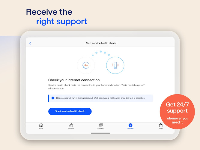 Support Options: Receive quick and easy support by checking your internet health, finding tech solutions, and contacting Telstra directly.