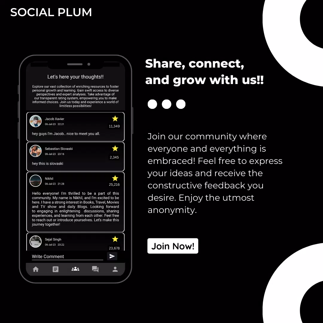 In conclusion, Social Plum: Share & Inspire is a versatile app that offers a visually stunning platform for capturing, sharing, and connecting through creative storytelling, engaging community interactions, and thought-provoking questionnaires. Download Social Plum today to embark on a journey of inspiration and lasting connections.