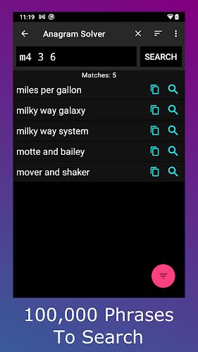 Introducing Anagram Solver, the ultimate tool for word game enthusiasts! With over 400,000 words and phrases at your fingertips, this app features super-fast search capabilities, multi-word anagrams, blank letter options for board games, powerful filters for refining results, and word definitions lookup. Whether you're playing Scrabble, crossword puzzles, or Spelling Bee, Anagram Solver is your go-to companion for finding the perfect words to dominate the game. Plus, with additional features like crossword phrase search, hints & tips, and multiple language word lists, this app is a must-have for word aficionados everywhere. Download Anagram Solver now and take your word game skills to the next level!