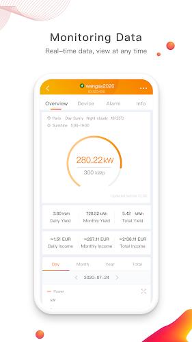 > Comprehensive Data Analysis: The app offers a comprehensive overview of your PV plant's performance, including daily, monthly, yearly, and total power generation statistics. This data can help you track the efficiency of your system and make informed decisions about energy usage.