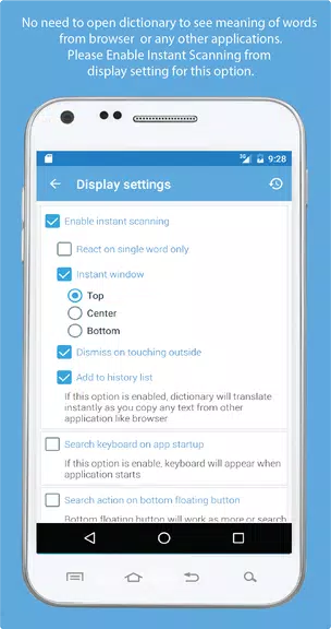 * Display Options: Customize the app display to suit your preferences