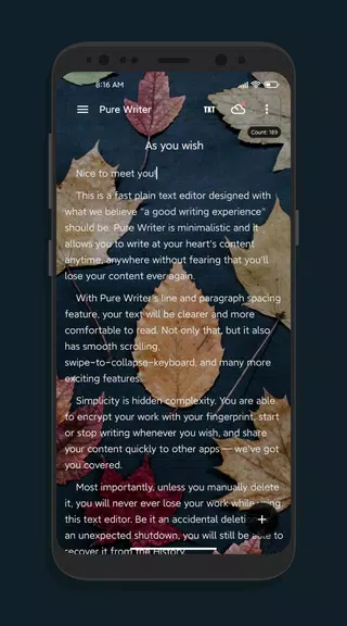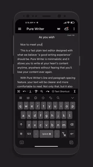 Pure Writer - Writing & Notes is the ultimate writing app that offers peace of mind, seamless writing experience, and creative features for all your writing needs. With a minimalist design and user-friendly interface, you can enjoy writing anytime, anywhere without any interruptions. Download Pure Writer now and unleash your creativity!