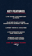 The New England Patriots official app offers a wide range of features for fans, including live game commentary, statistics, scores, highlights, news, and more. Fans in New England can also listen to live radio broadcasts of games. The app provides access to news, analysis, roster, and schedule information, as well as podcasts and in-depth interviews with former players. Other features include a game center with play-by-play commentary, roster information, injury reports, league standings, and the ability to purchase official team merchandise. Fans can also access social media accounts, find local fan clubs and sports bars, and much more. Some restrictions may apply based on location and device.