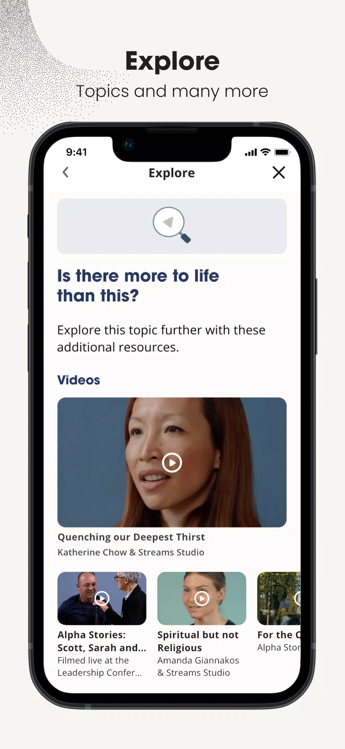 Alpha is the official companion app for the Alpha series. Alpha lets you rewatch session videos, read concise episode summaries and save private notes to support reflection and group discussion. Use Alpha to revisit discussion questions and track ideas that matter to you.