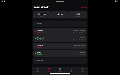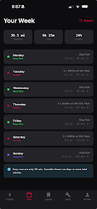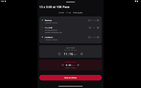 ✅ Saved workouts, editable warmups/cooldowns, and a clean dark-mode interface make the app quick to use before a run.