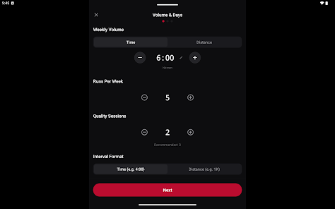 ⭐ Send workouts to a connected smartwatch with optional pace alerts; supports metric and imperial units and includes a dark-mode interface.