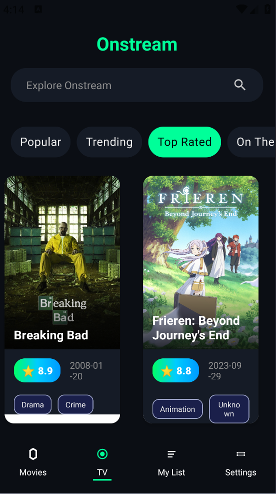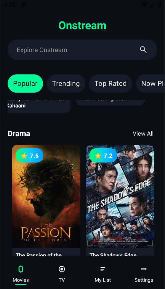 Onstream - Movies & TV HD centralizes movie and TV metadata so you don’t need to consult multiple sources, keeps viewing plans organized with a My List, and surfaces trending and popular picks so you can stay current with minimal effort.