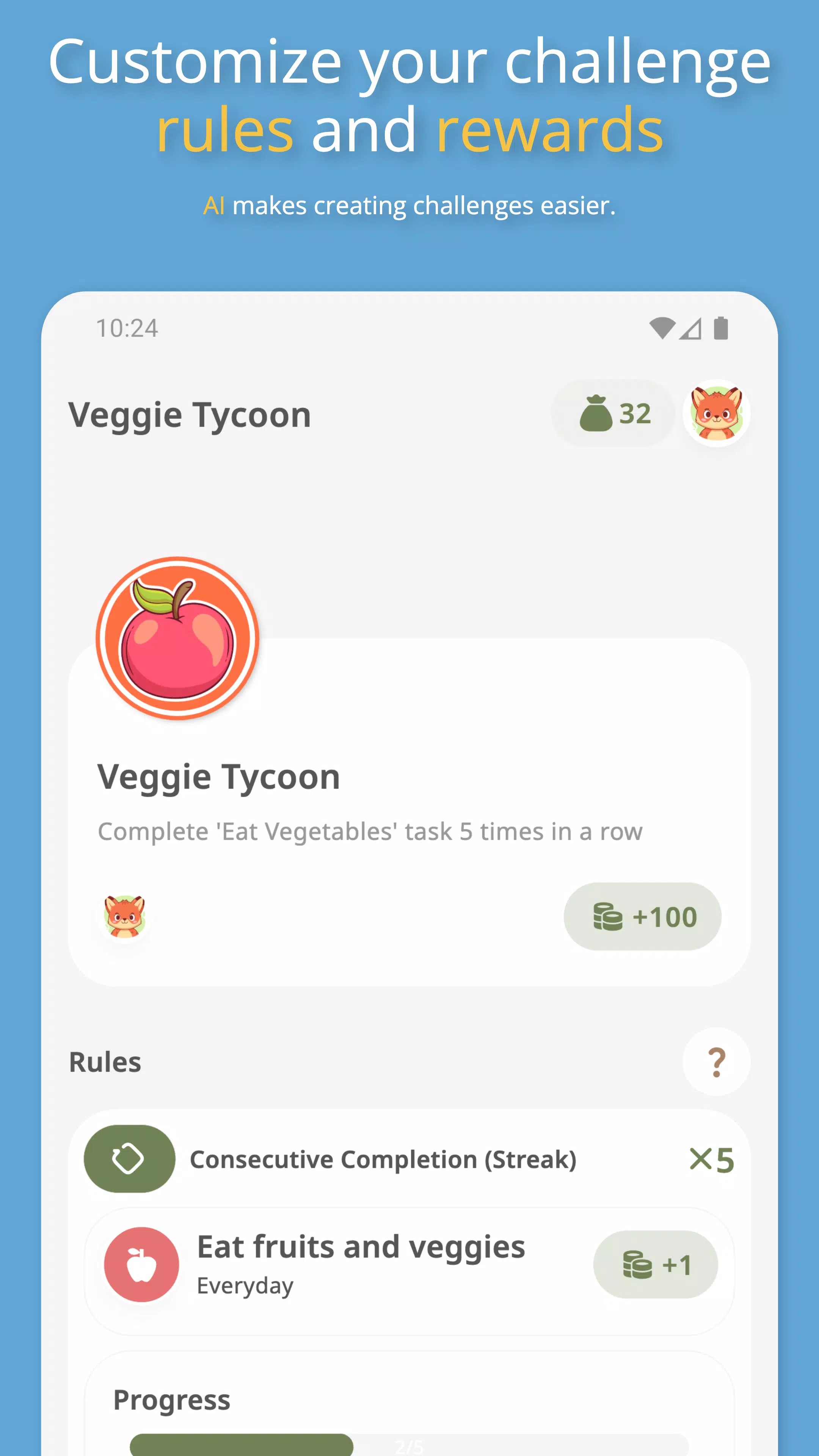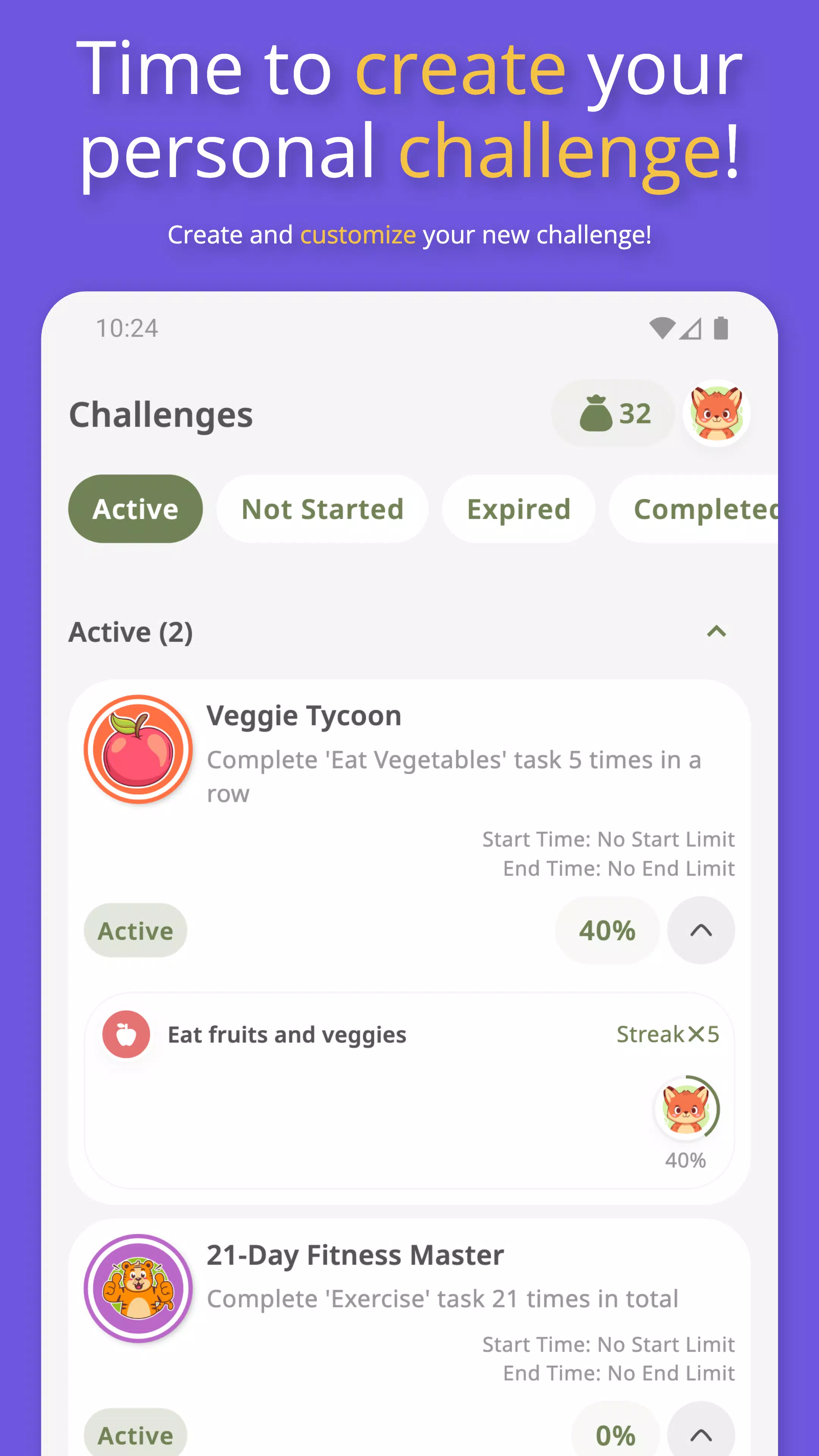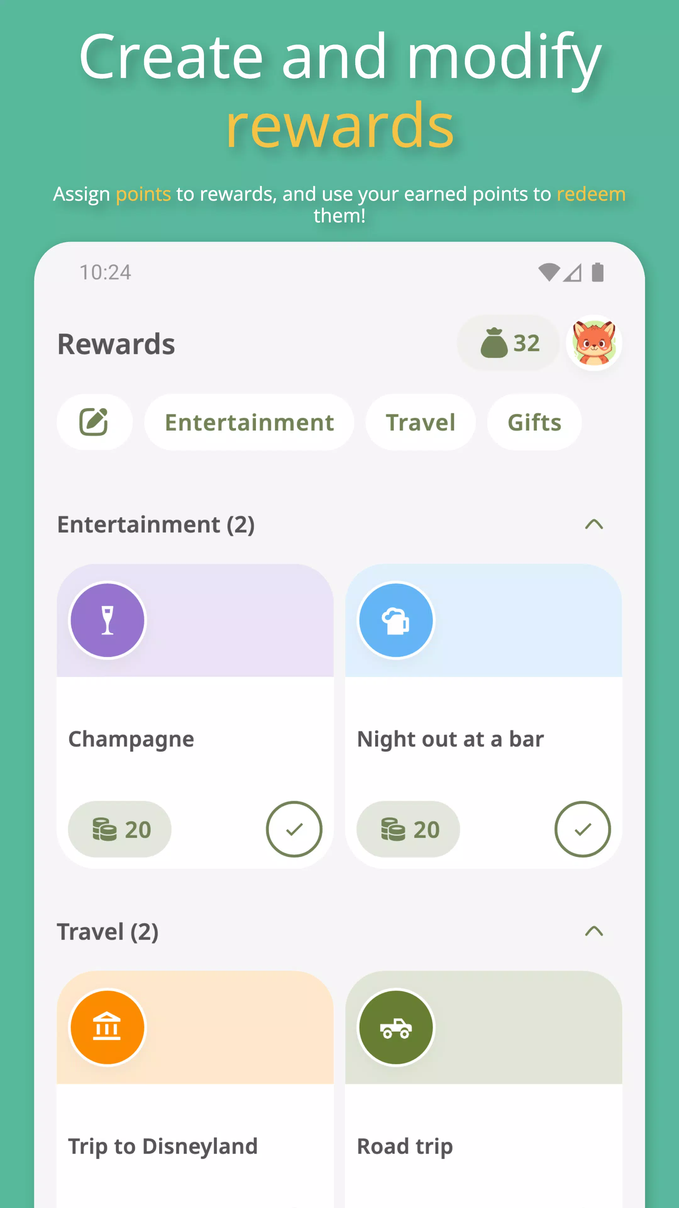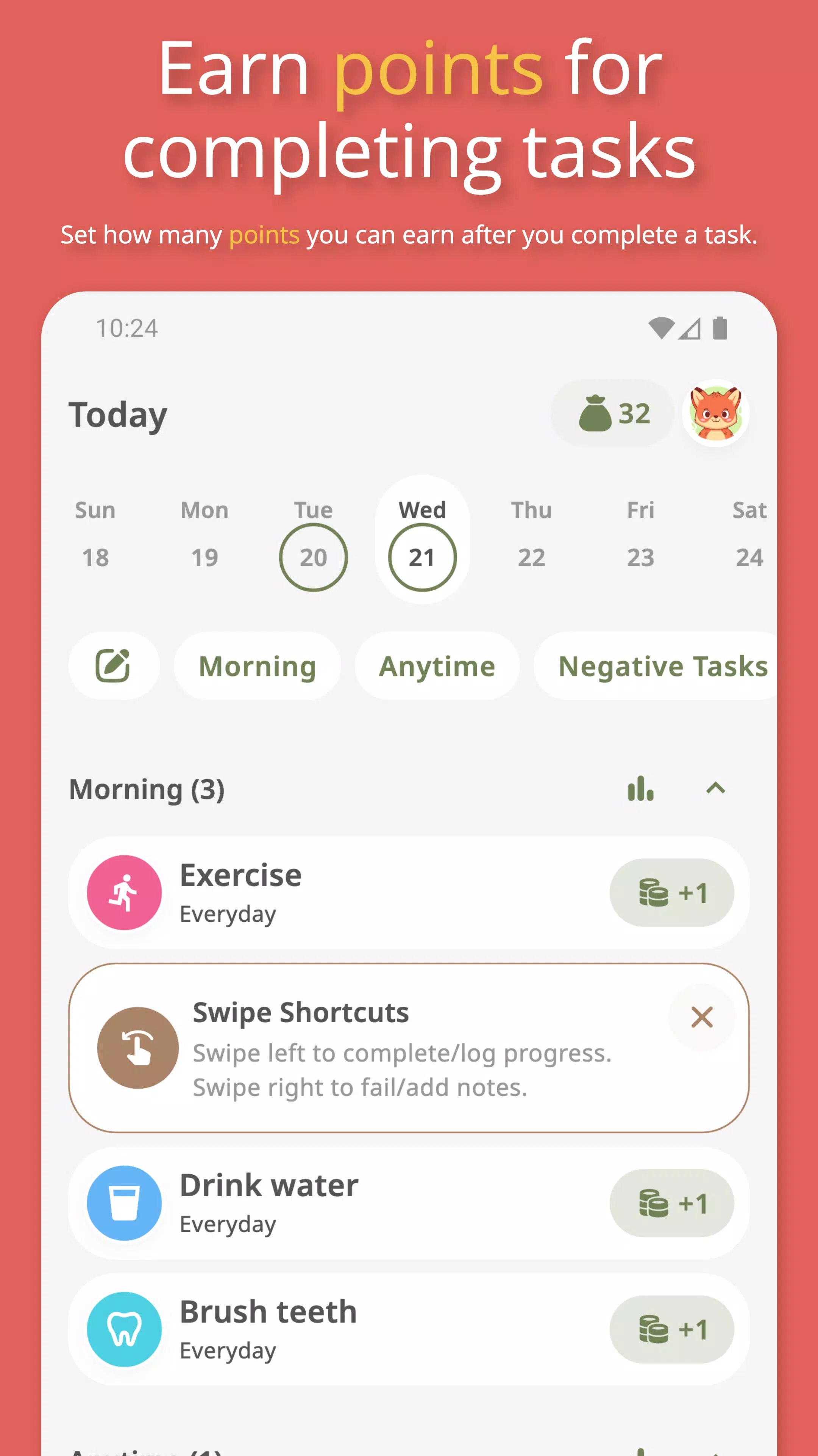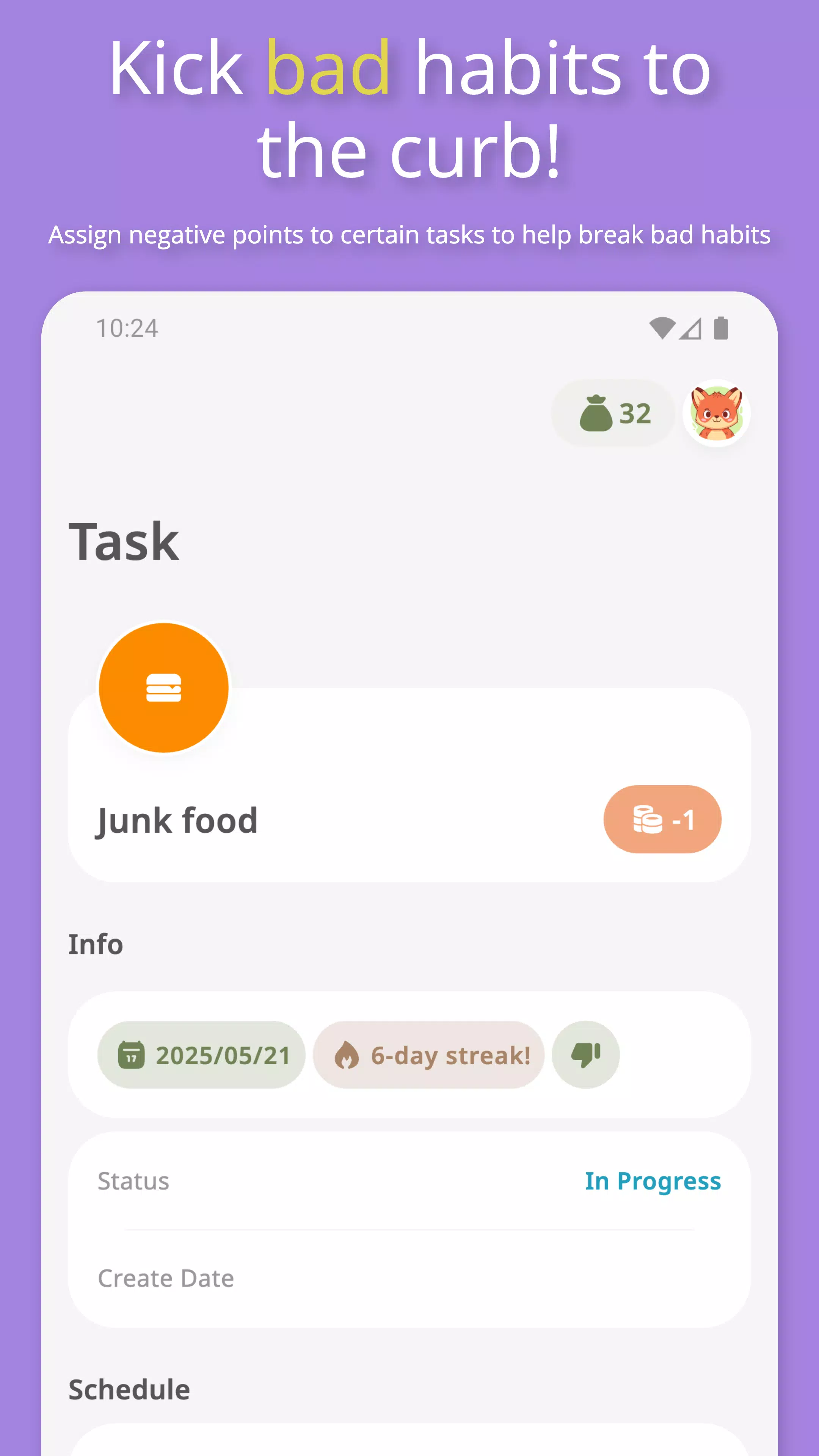Assign points to habits and tasks and schedule repeating items daily, weekly or monthly so you earn points each time you complete them. Create redeemable rewards, set point costs and manage a personal reward catalog to turn progress into tangible incentives. Build custom challenges and earn badges for streaks or repeat completions with options to grant extra points or bonuses on success. Use widgets, reminders and comment fields to record status from your home screen and keep context for each habit. Access templates and visual charts to review point trends, task performance and reward history.