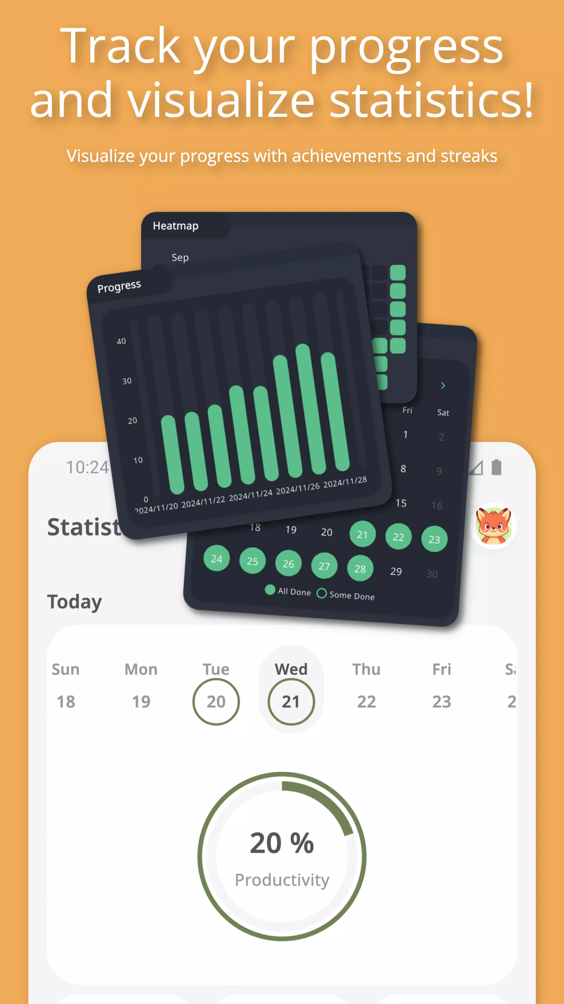 Habit Tracker helps you build routines by turning tasks into a points-and-rewards system that makes habit formation more motivating and measurable. Use the Habit Tracker app to schedule repeating habits, assign point values to positive actions and deduct points for lapses, and create custom rewards you can redeem with earned points. The app supports challenges, badges, home-screen widgets, reminders, comments, templates and charts so you can track streaks and long-term progress.