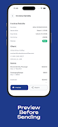 Enter client and item details to generate an invoice, then save, export, or send the invoice directly from the app. Update payment records when funds are received and view outstanding balances to keep accounts current.
