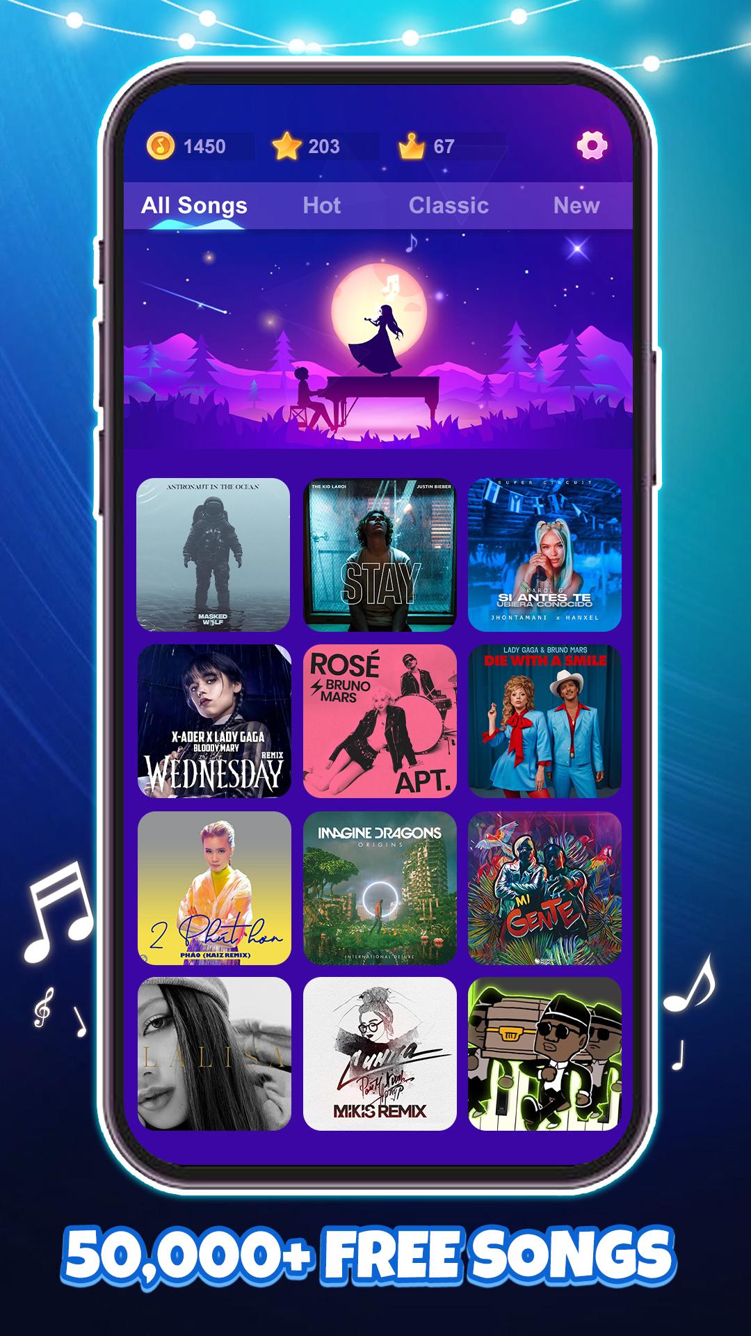 Immerse yourself in the vibrant world of rhythm and music with this dynamic piano tiles game that will have you tapping to the beat in no time! With its stunning visuals and smart difficulty system, this app is perfect for players of all levels - from beginners to rhythm masters. Customize your gameplay experience with different visual modes and create your own unique style by setting up your own background and music choices. Whether you're looking for a casual gaming experience or a challenge, this app has something for everyone. Step into the world of Neon Magic and let the rhythm take over!