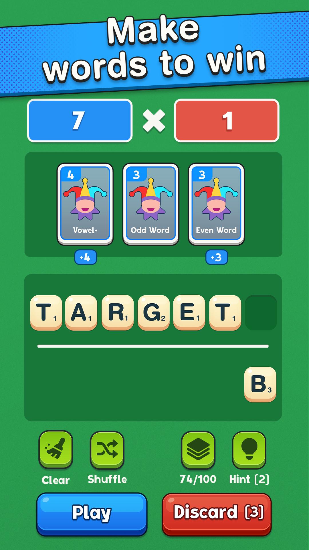 > Make Words Strategically: Plan your word formations to reach the target score efficiently.