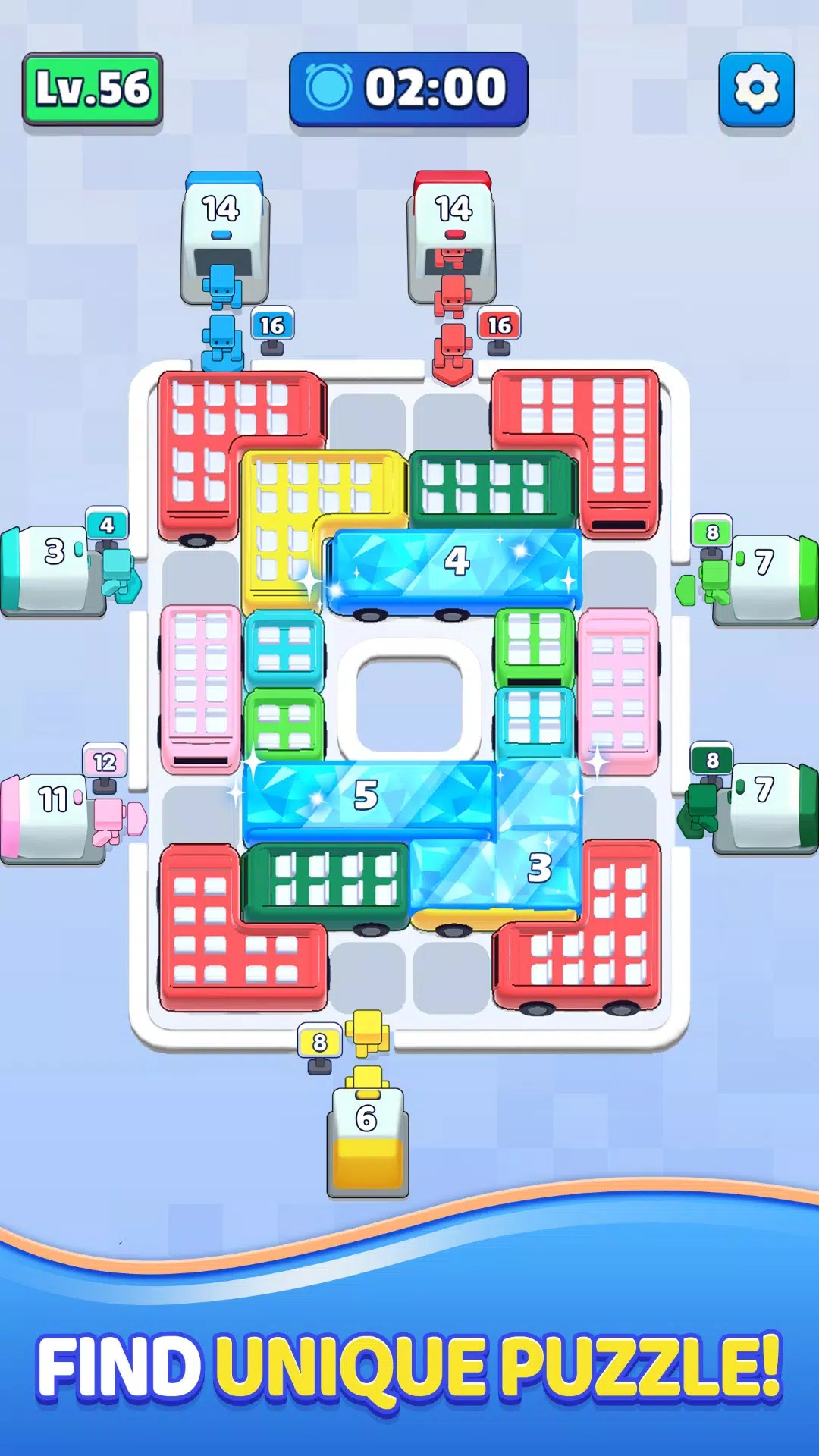 Unique Sliding Puzzle Mechanics: Unlike traditional block puzzles, Color Bus Jam challenges players to slide colorful buses in various directions to match them with corresponding gates.