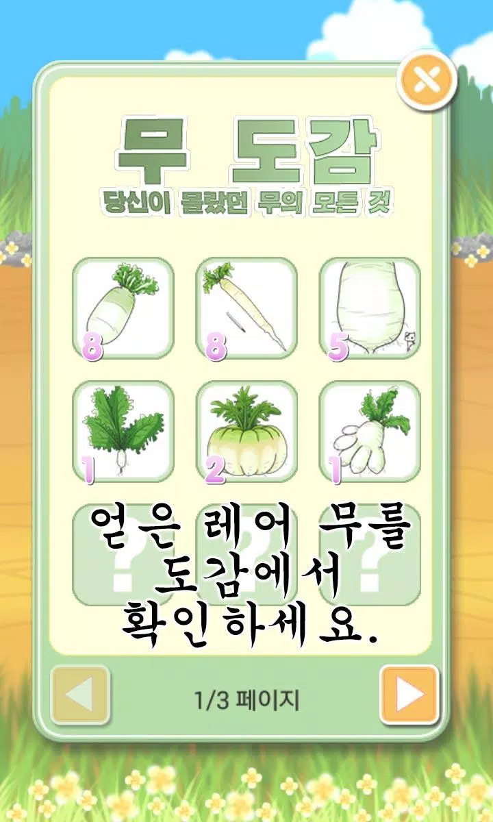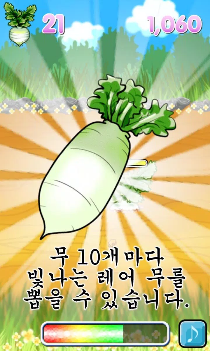 Embark on a radish-picking adventure like never before with the unique gameplay and rare radishes in the 무 뽑기 게임. Test your skills, manage your health, and challenge yourself to collect all 25 types of rare radishes. Download the game now and enjoy a fun and exciting experience that will keep you entertained for hours!