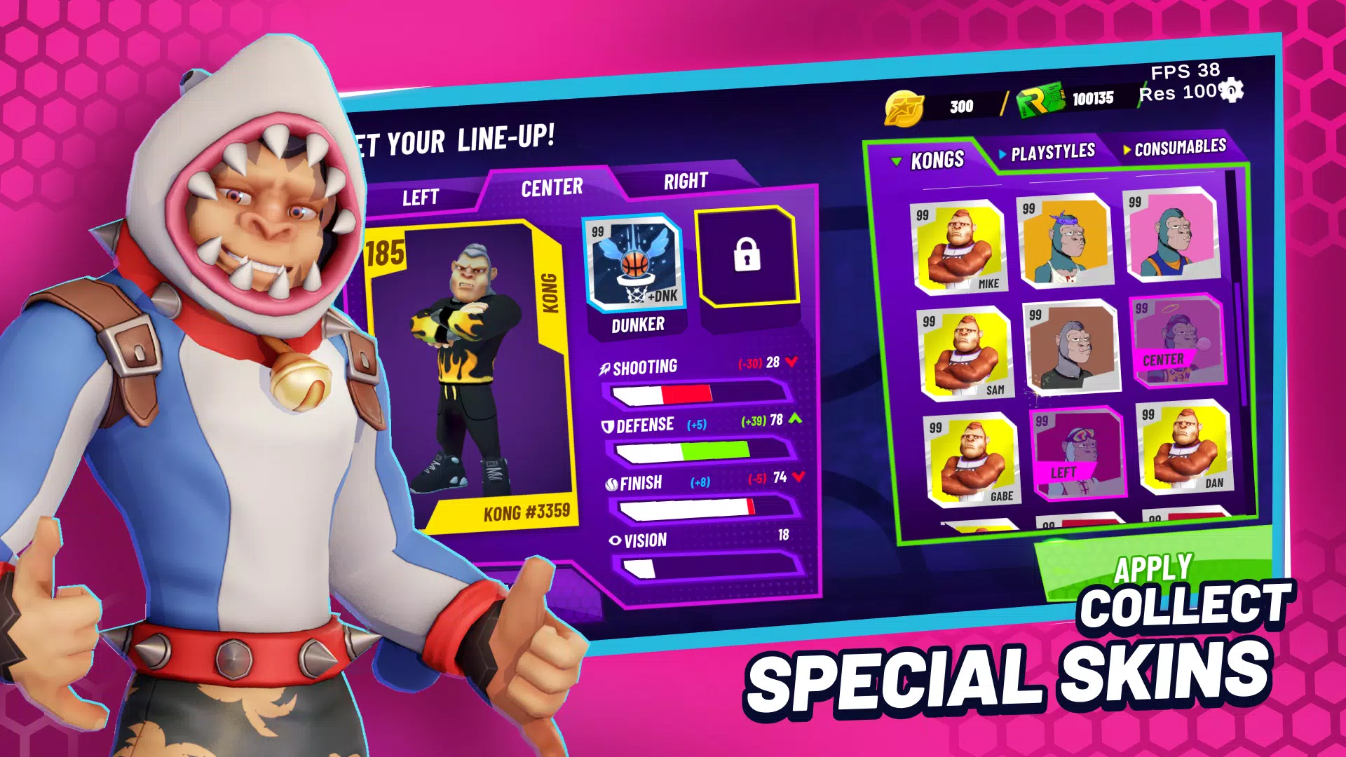 Rumble Kong League offers a thrilling mix of fast-paced arcade basketball action, unique skills and special moves, and strategic team building. Dive into the exciting world of 3v3 basketball, dominate the hardwood with stylish dunks, and compete in leagues to unlock exclusive rewards. With continuous updates and new content, Rumble Kong League promises an epic gaming experience that will keep you coming back for more. Lace-up, hit the courts, and show the world your basketball skills in Rumble Kong League!