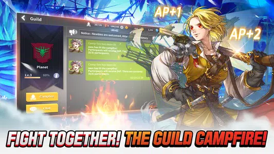 Join a guild in Lucid Adventure and play boss raids with fellow members. Gain bonus APs from campfires and collaborate with others to take on challenges together.