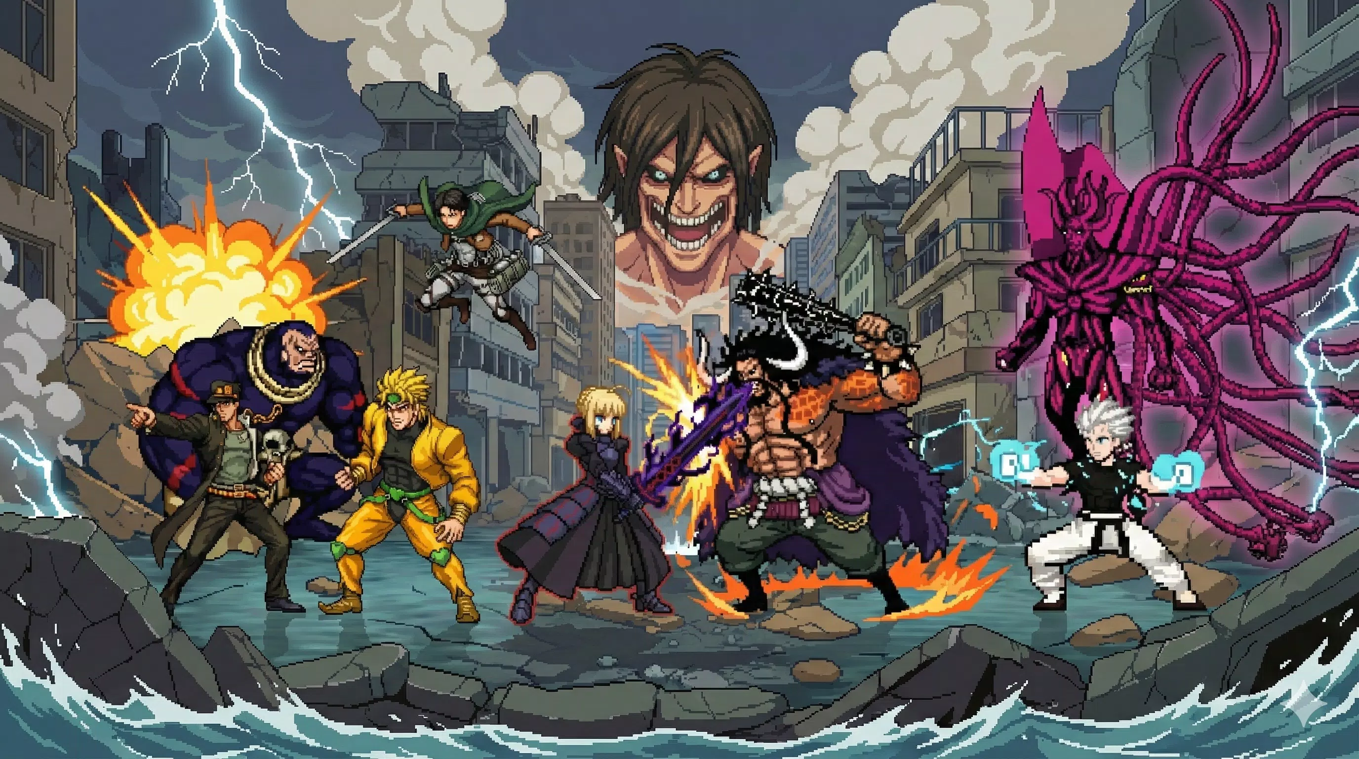 Meticulously crafted pixel art characters that reinterpret familiar anime archetypes; a strategic battle system focused on combinations and timing; an equipment and contract system to customize and power up favorites; diverse modes including Adventure, Battle, Collection and Brawl; idle resource accumulation for steady growth without constant play. The design supports both competitive clashes and casual collection, allowing you to prioritize team synergy or character development depending on your playstyle.