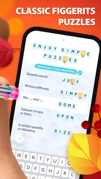 The core of Crostic revolves around associative crosswords where letters are matched to numbers and dragged into solution slots. Players piece together words from clues, move letters into place, and fill dashes in a wordlist to reveal proverbs, quotes or secret terms. Sessions are bite-sized but rich in variety: Classic mode presents traditional figgerits-style challenges while Relax mode offers gentler puzzles for stress-free play. Daily goals add structure, encouraging repeat visits and steady progression on the leaderboard.