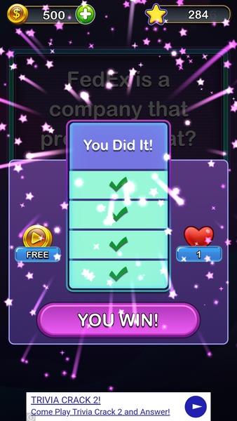 Fast-paced multiple-choice gameplay lets you answer against the clock and progress through increasingly challenging levels. Coins and a hint system help you overcome tough questions, and daily bonus coins support regular play.