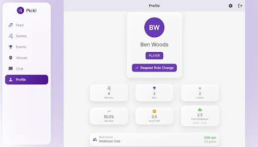 • Player profiles: Track partners and opponents, notes, and ratings.