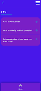 ⭐ WorldGames includes an intuitive home screen and a favorites list to save preferred games for quick access.